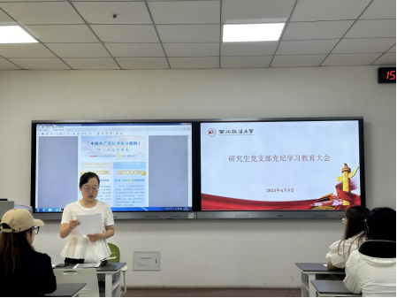 根据公司党委和公司党委关于党纪学习教育的部署及相关安排,研究生党支部于6月5日下午15:00在5教204召开党纪学习教育专题学习会议。会议由支部书记慕婧主持,支部全体党员参会交流学习。