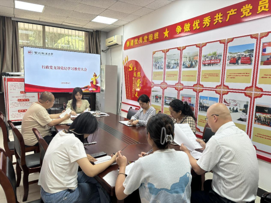会议学习了习近平总书记关于党纪学习教育的重要论述和重要指示,原文学习了《中国共产党纪律处分条例》第一编总则部分。随后支部开展了教育系统违纪违法典型案例警示教育,教育引导党员干部受警醒、明底线、知敬畏。最后李彧嘉就纪律建设讲专题党课,对党纪的重要性、内涵以及如何在实际工作和生活中践行党纪进行了全面而深入的阐述。支部党员积极参与讨论交流,纷纷表示在今后的工作中时刻以党纪为准则,保持廉洁自律,将党纪学习作为政治学习的“必修课”,把自己摆进去、把工作摆进去、把职责摆进去,切实把党纪学习成果转化为善作善为的“金钥匙”。