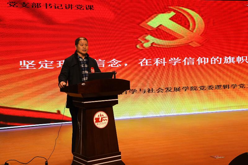 赵全金老师以《坚定理想信念,在科学信仰的旗帜下砥砺前行》为题,从理想信念教育是党员教育的首要问题入手,辨析理想、信念与信仰的区别与联系,进而论述了中国共产党人的理想信念是建立在马克思主义的基本原理之上的,同时又结合中国革命、建设和改革的实际。所以要坚定理想信念,首先要坚信马克思主义基本原理。中国共产党人的理想信念就是对马克思主义的信仰,对社会主义和共产主义的信念。中国共产党人矢志不渝坚定共产主义的理想和社会主义必胜的信念,脚踏实地走出了一条中国特色的社会主义道路,造就了一个方向正确、文化引领、民心所望、道德高尚的先进政党。在与时俱进的改革开放新时期,共产党人要永葆先进、纯洁和优秀,就必须在科学信仰的旗帜下继续砥砺前行,勇于担当,践行责任,与时代同行,让信仰导航,不忘初心,牢记使命,为实现中华民族伟大复兴的中国梦不懈奋斗。