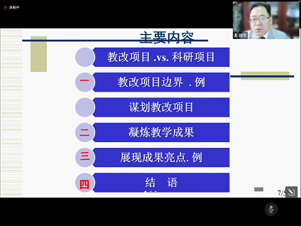 魏奇教授从教学职称变革角度出发,提出了“为什么要申报教学改革项目”,从外部驱动和内部驱动两个方面分析引出了讲座的题目《教学成果的培育与凝练》。魏奇教授厘清了教学项目科研项目的异同之处,援引了教学改革项目的实际经验,用丰富的经验与实例将教学改革从谋划教改项目、凝练教学成果等各个环节层层递进地讲解了如何做好教学改革项目及成果。