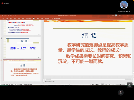 会议的最后,魏奇教授总结了教学研究的落脚点是提高教学质量,是员工的成长、教师的成长。教学成果需要长时间的研究、积累和沉淀,不可能一蹴而就。与会老师们也向魏奇教授请教相关问题,纷纷表示会积极参与到教学成果的凝练积累与相关项目申报的过程当中。