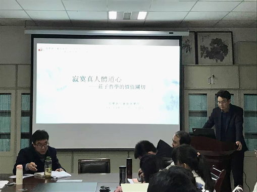 张磊老师做了《寂寞真人体道心:庄子哲学的价值关切》的学术报告。报告指出:庄子哲学其实质是一种价值哲学,本次报告系统呈现其既有思想内容,深入分析其形成内在理路与学理系统,即可在理论意义上抽绎其回应“世界是什么”和“人应当如何存在”问题的哲学洞见。立足于知识与智慧的区分,提出“真人”作为庄子哲学的理想人格,其本身即体现着某种基于形上追寻的价值理想,展示了某种超越知识区分,回归智慧实践的尝试。